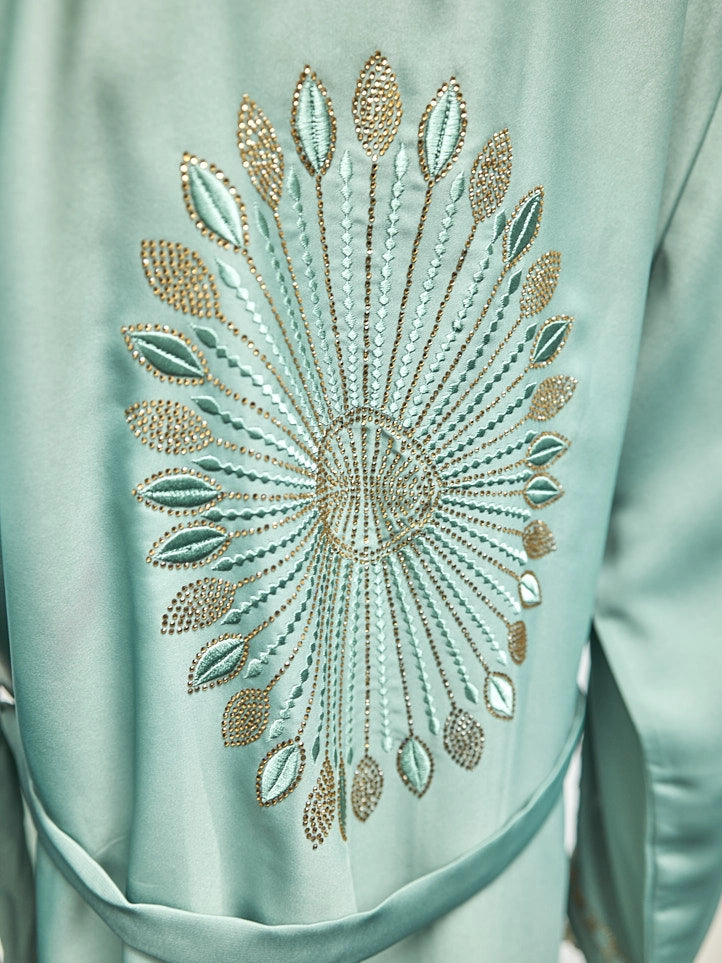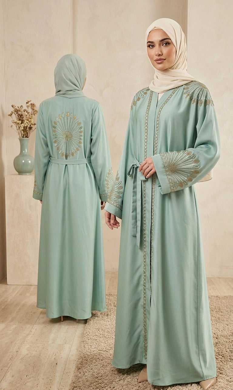 Abaya mit edler Stickerei und Gürtel
